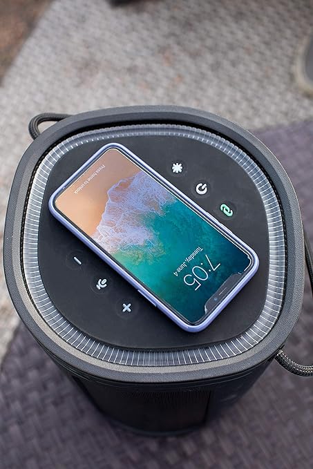 - BUILT-IN DEVICE CHARGER: Our Altec Lansing bluetooth speakers come equipped with built-in battery banks for your devices, giving you wireless QI chargers and USB chargers for your smartphone or tablet. With up to 20 hours of playtime, our blue tooth speaker’s portable power bank makes a great addition to any outdoor bluetooth speaker system! Whether you need rugged ATV speakers or portable pool speakers for summer, the SoundBucket XL provides portable speakers bluetooth users can take anywhere!