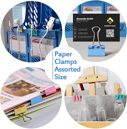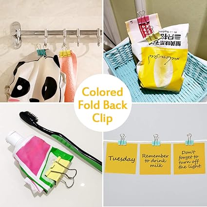 - WIDE APPLICATION: These colored fold back clips with different sizes can hold papers or documents together steadily based on different thickness. The paper clamps can also be used for daily DIY, office, making bookmarks, photo albums,cable, business card holders and envelope clips, etc.
