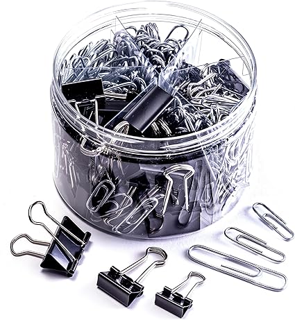 - 40 total black binder clips (20 x 0.6″, 12 x 0.75″, 8 x 1.0″ binder clips)